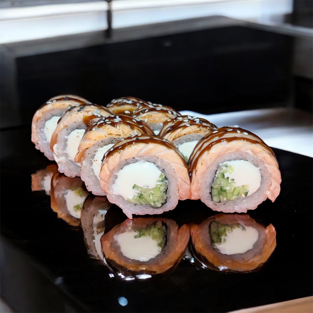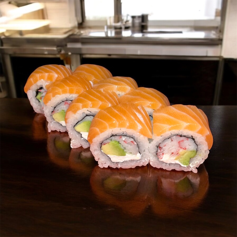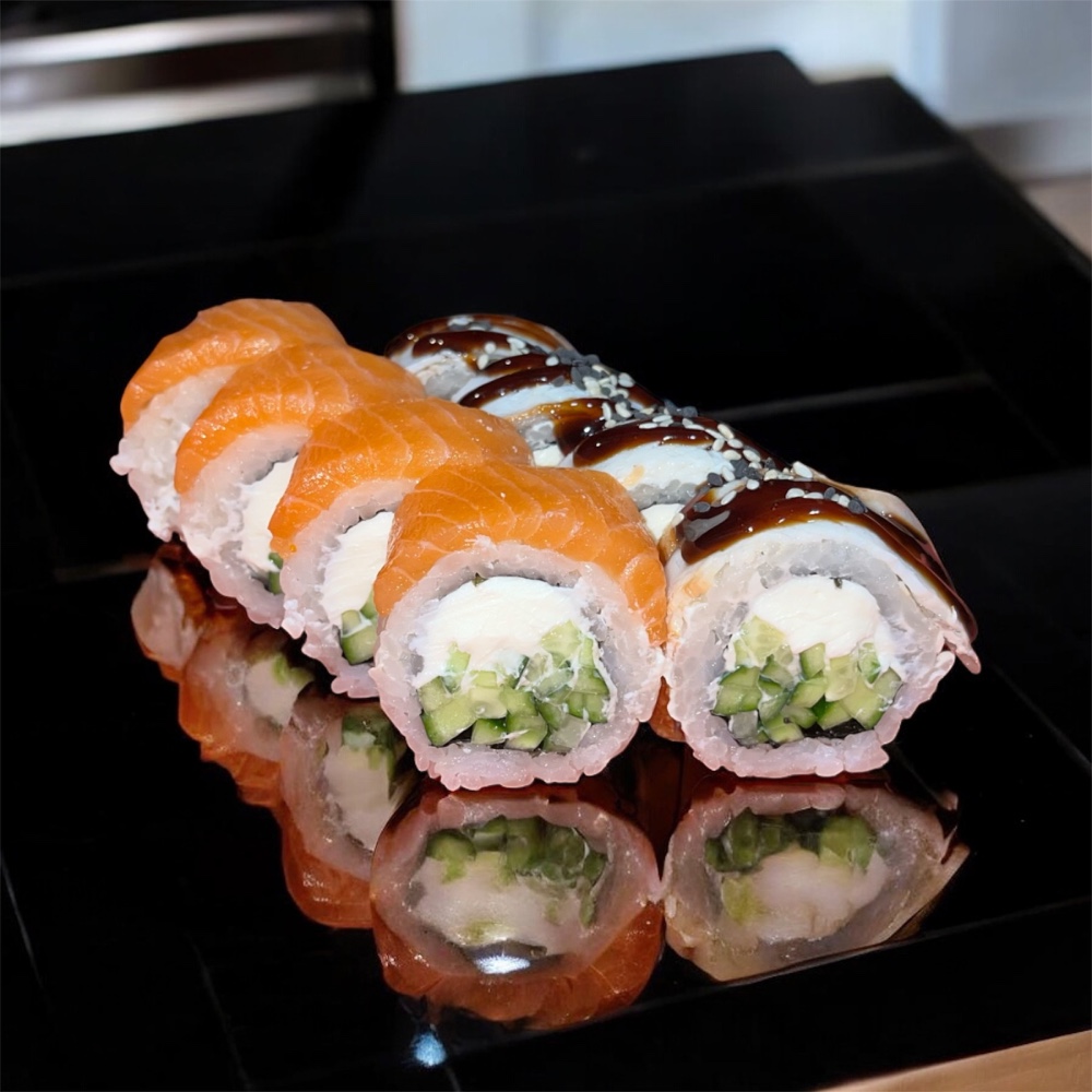 Рис.норі.вершковий сир.лосось.огірки 8 шт 280 грам
