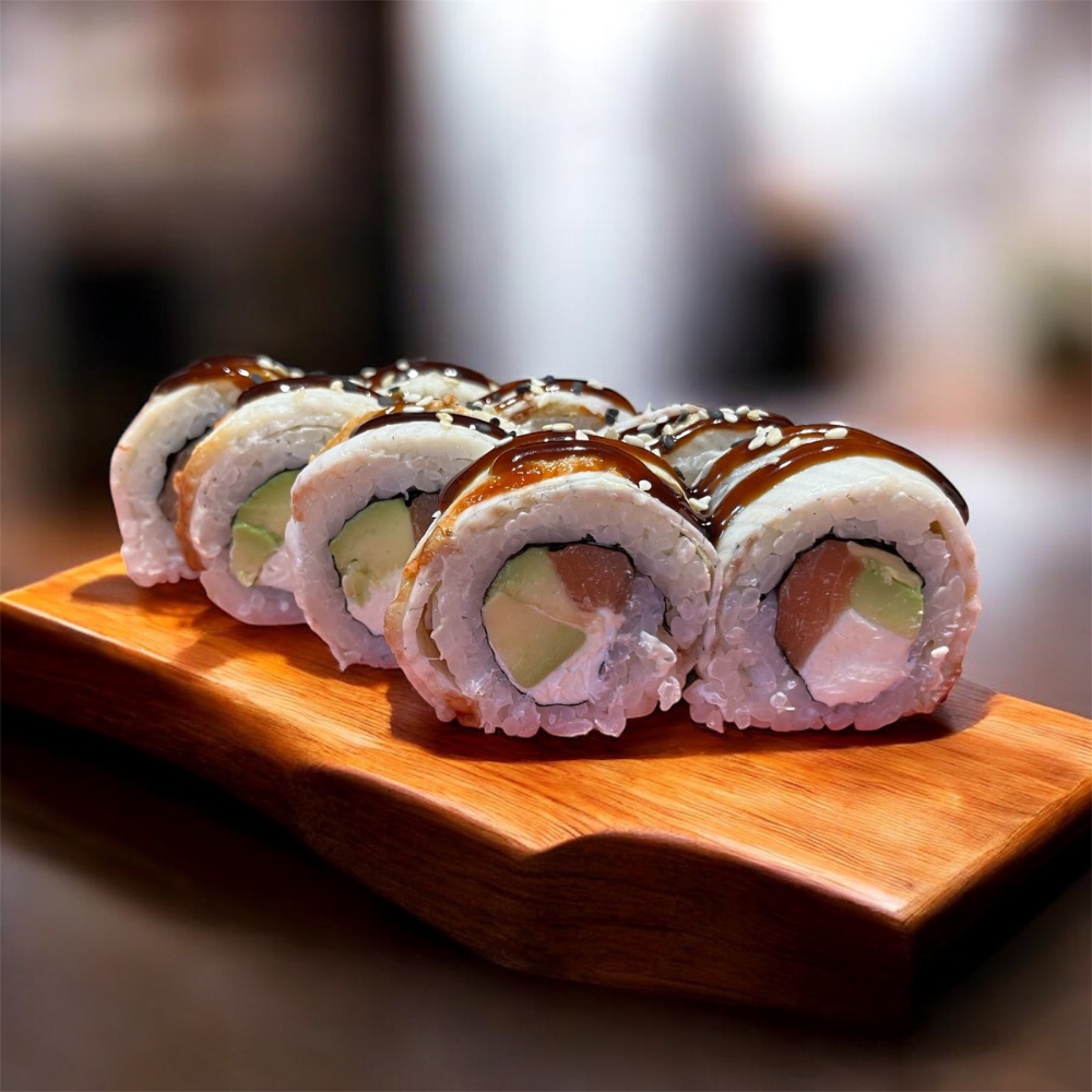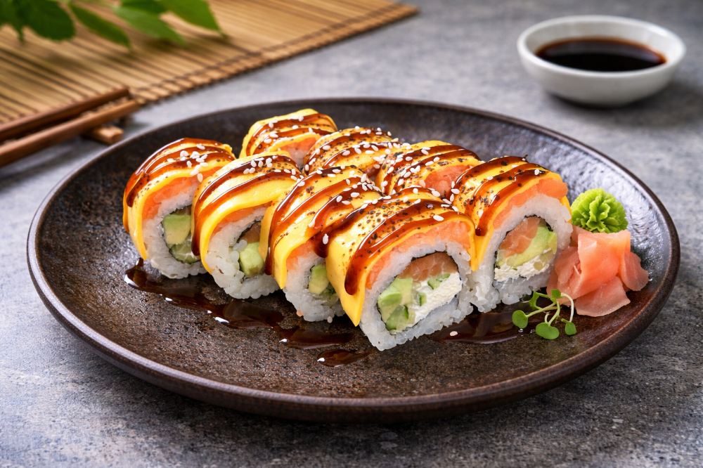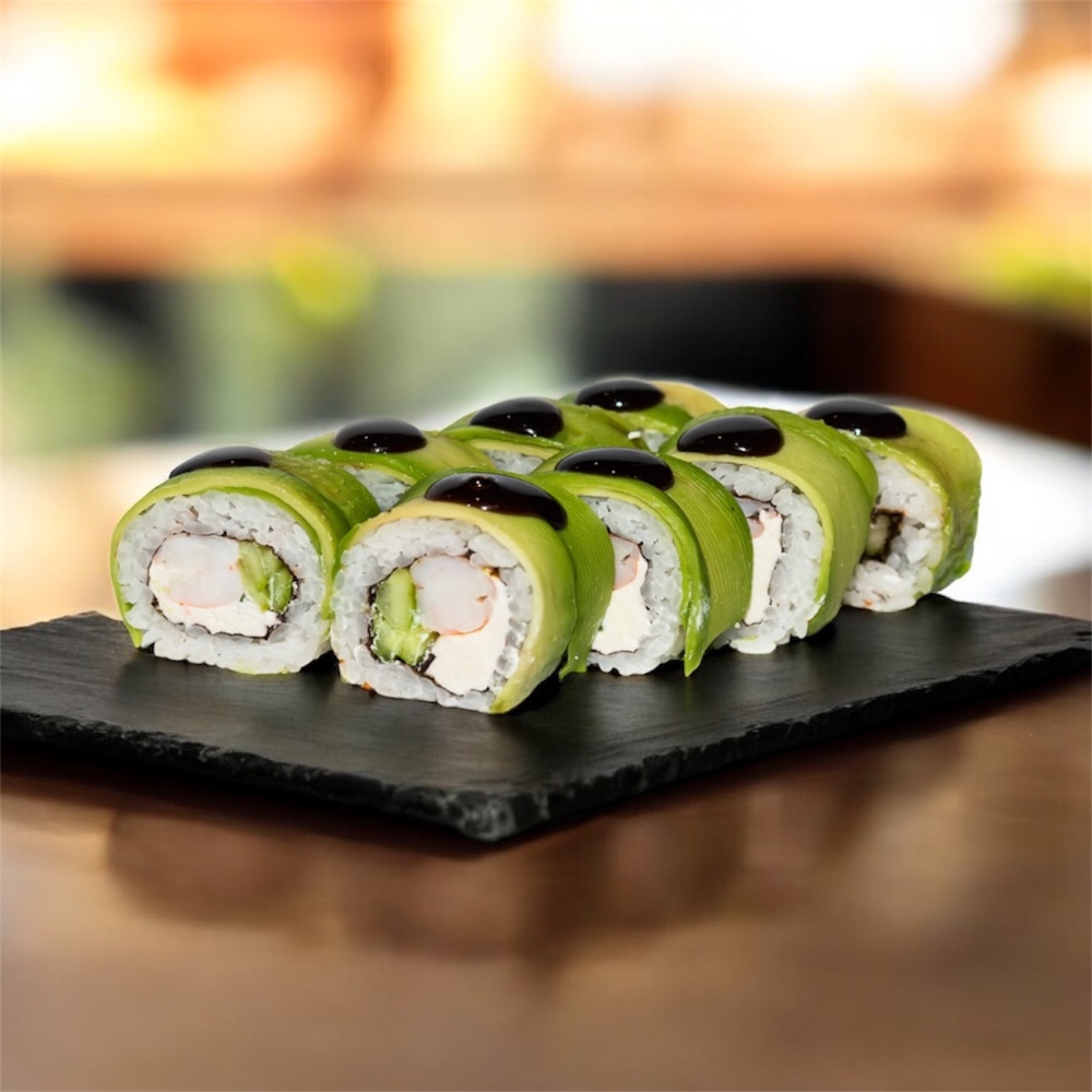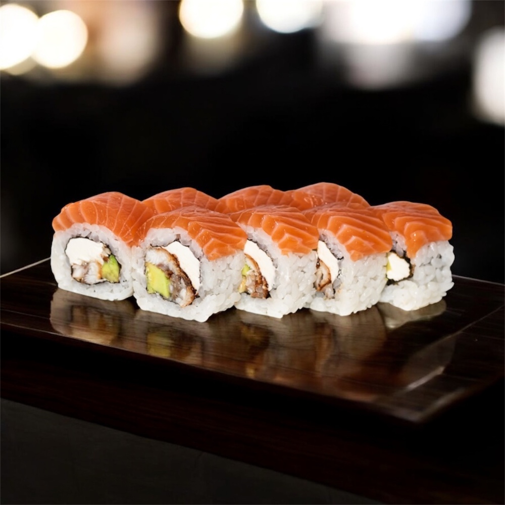 Рис.норі.вершковий сир.лосось.огірки 8 шт 280 грам